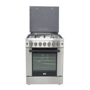 BJ’S 90*60 4GAS+1WOK+1HOTPLATE SILVER/INOX Standing Cooker is a versatile kitchen appliance designed to meet various cooking needs. It features a pool burner with a jet valve for efficient gas usage.