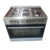 The cooker has four gas burners that provide even heat distribution for cooking various dishes simultaneously. Additionally, the oven uses gas that is both top and bottom heating elements along with a grill for versatile cooking options.